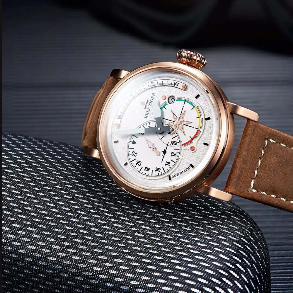 Best Quality Reef Tiger/RT Mens Pilot Watches for Men Rose Gold White Dial Automatic Watch Military Watches with